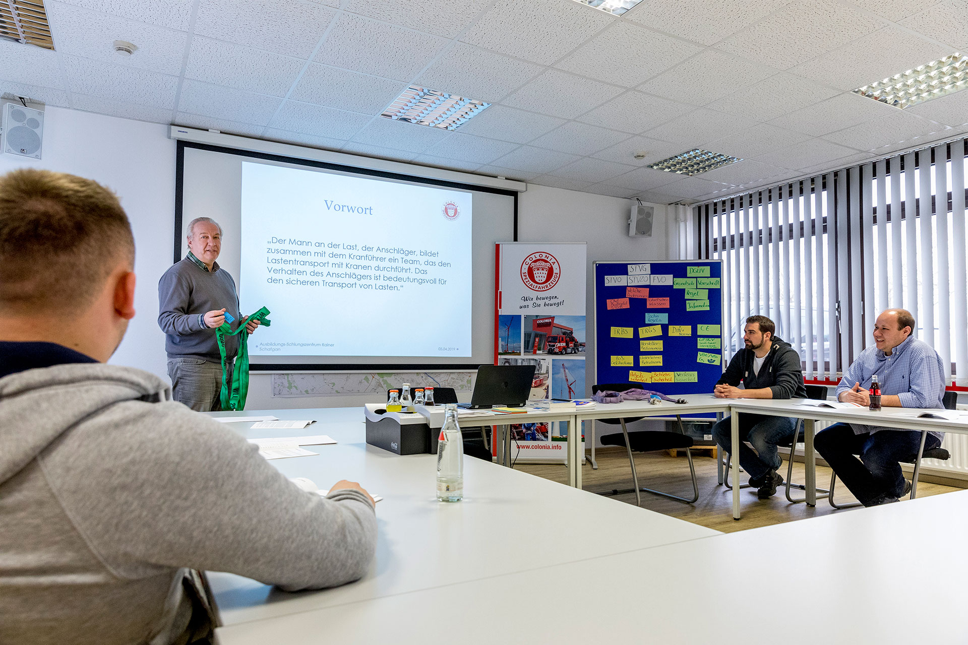 COLONIA bildet nicht nur im hauseigenen Ausbildungs- und Schulungszentrum aus, sondern auch vor Ort, in Ihrem Unternehmen. Die Vorteile liegen klar auf der Hand: Ihre Mitarbeiter können am eigenen Arbeitsplatz, auf ihren eigenen Fahrzeugen und mit ihren eigenen Arbeitsmitteln trainieren. Das ist effizient – und auch kostengünstig!